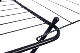 Компактная и устойчивая сушилка. Имеет съёмные облегчённые крылья из проволоки 3 мм. для мелких вещей. Удобный и надежный механизм раскладывания . Пластиковые колпаки на ножках сушилки защищают пол от царапин. Все углы сушилки плавно скруглены. Пластик: черный.Длина рабочей поверхности 20 м. Макс. нагрузка 16 кг. Высота в рабочем положении 80 см. Вес нетто - 2,6 кг.Размер в сложенном виде: 119,7х53х3,5 см.