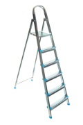 Стальная 6-ти ступенчатая оцинкованная стремянка Zalger. Для бытовых, ремонтных и отделочных работ. Широкая стальная платформа 25см. и ступени 7,5см. с рифленой противоскользящей поверхностью. Усиленное 4-х точечное крепление ступеней к профилю стремянки. Пластиковые насадки на ножках обеспечивают стабильность и безопасность. Размер в разложенном (рабочем) положении: 49*166 см. (Ш*В). Макс.достижимая рабочая высота: 295 см. Макс.нагрузка на стремянку: 120 кг. Материал: сталь, пластик.