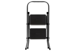 Стальная 2-х ступенчатя стремянка для бытовых, ремонтных, строительно-монтажных, отделочных и садово-дачных работ серии "Jet Black". Стремянка имеет порошково-полимерное покрытие-защита от коррозии. Ступени с противоскользящими ковриками, что обеспечивает дополнительную безопасность при работе со стремянкой, коврик изготовлен из пластика с ребристой поверхностью. Размер ступеней-30х20см. Макс. нагрузка-150 кг. Макс.достижимая высота-244,5см. Высота до верхней ступени 44,5 см. Размер в открытом (разложенном) виде: 45*40*83см. Вес-3,65кг. Цвет- черный.