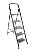 Стальная 5-ти ступенчатя стремянка для бытовых, ремонтных, строительно-монтажных, отделочных и садово-дачных работ серии "Jet Black". Стремянка имеет порошково-полимерное покрытие-защита от коррозии. Ступени с противоскользящими ковриками, что обеспечивает дополнительную безопасность при работе со стремянкой.Конструкцией предусмотрены страховочные ремни безопасности.Размер ступеней-30х20см. Макс. нагрузка-120 кг. Макс.достижимая рабочая высота-315см. Высота до верхней ступени 115см. Размер в открытом (разложенном) виде: 45,5*98*155см. Вес-8,23кг. Цвет: Угольно-Черный.
