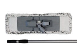 Швабра для влажной уборки. Цвет стеллажа : серый. Ручка телескопическая 71-120 см, обеспечивает удобное компактное хранение . Материал: полипропилен, полиэтилен, металл. Насадка 44*13 см, материал насадки : полиэстер, плотность 720 г/м2. Поставляется в собранном виде. Цветной проспект.
