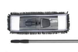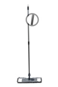 Швабра для влажной уборки. Платформа усиленная с фурнитурой. Цвет платформы : серый. Ручка телескопическая 71-130 см обеспечивает компактное хранение . Материал: полипропилен, полиэтилен, металл. Насадка: внутренний размер 40*10 см, внешний размер : 48*19 см, материал насадки : полиэстер, плотность 1750 г/м2. Поставляется в собранном виде. Цветной проспект.