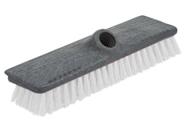 Щетка без ручки с жесткой щетиной для сухой уборки пола. Предназначена для подметания и чистки поверхностей. Можно подобрать ручку исходя из потребностей покупателя. Материал: пластик.. Размер 24*7*7см. Цвет основы - темно-серый , цвет щетины белый. Резьба коническая 19-22 мм