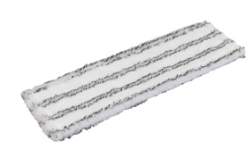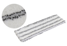 Сменная насадка для плоской швабры микрофибра с абразивом. Подходит для влажной уборки плоских поверхностей. Насадка качественно собирает пыль и мелкий мусор, не оставляет разводов на поверхности, легко отжимается. Специальные абразивные полоски по всей длине насадки облегчают процесс уборки и позволяют качественно собирать пыль и грязь в стыках плитки, паркета или ламината. Материал: микрофибра (PES -100%) с абразивом. Плотность насадки 750 г/м2Размер 44*13,5см. Цвет насадки - белый в полоску (серый).