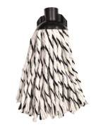 Сменная насадка для швабры МОП. Материал: нити- 50% хлопок, 50% полиэстер, головка- полипропилен. Подходит для влажной уборки помещений. Цвет пластика -черный.Резьба коническая 19-22 мм